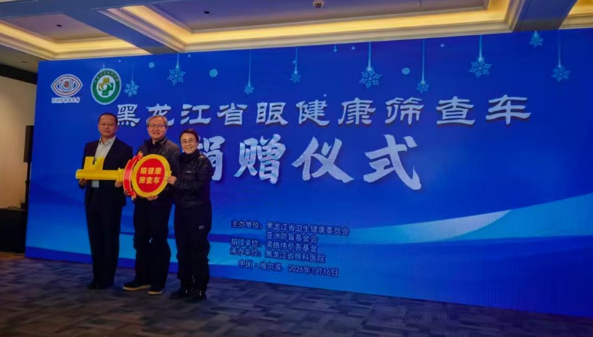 於2026年1 月16日,流動視力篩查車5號捐贈儀式在哈爾濱隆重舉行。梁植偉慈善基金代表董煜醫生及蔡雲兒女士;