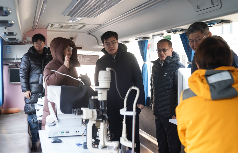 黑龍江省眼科醫院副院長李廣紅女士陪同下,參觀其捐贈的中國流動視力篩查車5號。