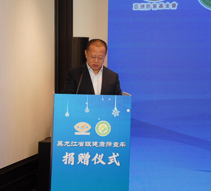 上圖為亞洲防盲基金會行政總裁陳梁悅明太平紳士在捐贈儀式上講話 上圖為黑龍江省眼科醫院書記劉志峰先生在捐贈儀式上講話